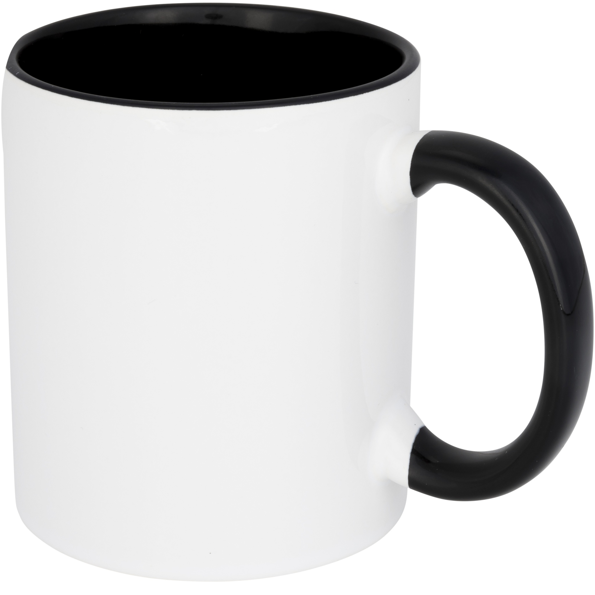 Denna klassiskt designade keramikmugg har en speciell beläggning för sublimering. Muggen har ett färgat inre med matchande handtag. Tål maskindisk enligt EN12875-1 (minst 125 tvättcykler) för alla dekorationsmetoder. Volymkapacitet 330ml. Presenteras i en vit kartong.