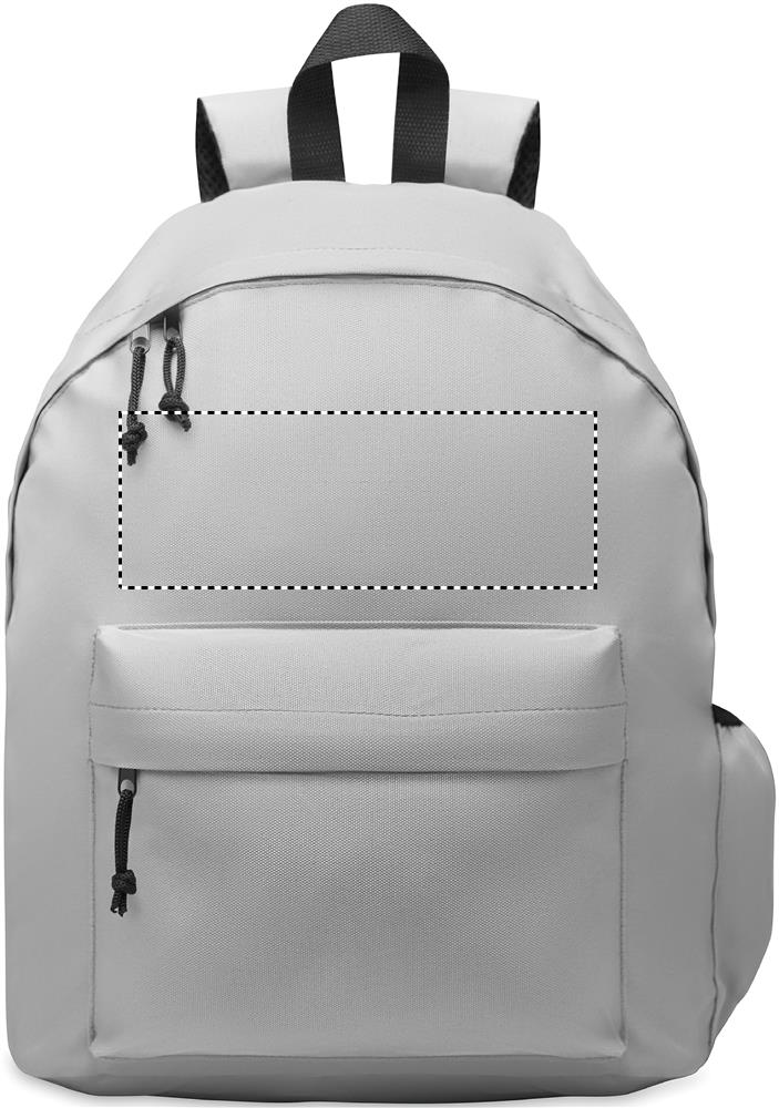 Ryggsäck i 600D RPET polyester med ytterficka med dragkedja. Vadderad rygg och har ett flaskficka på sidan.