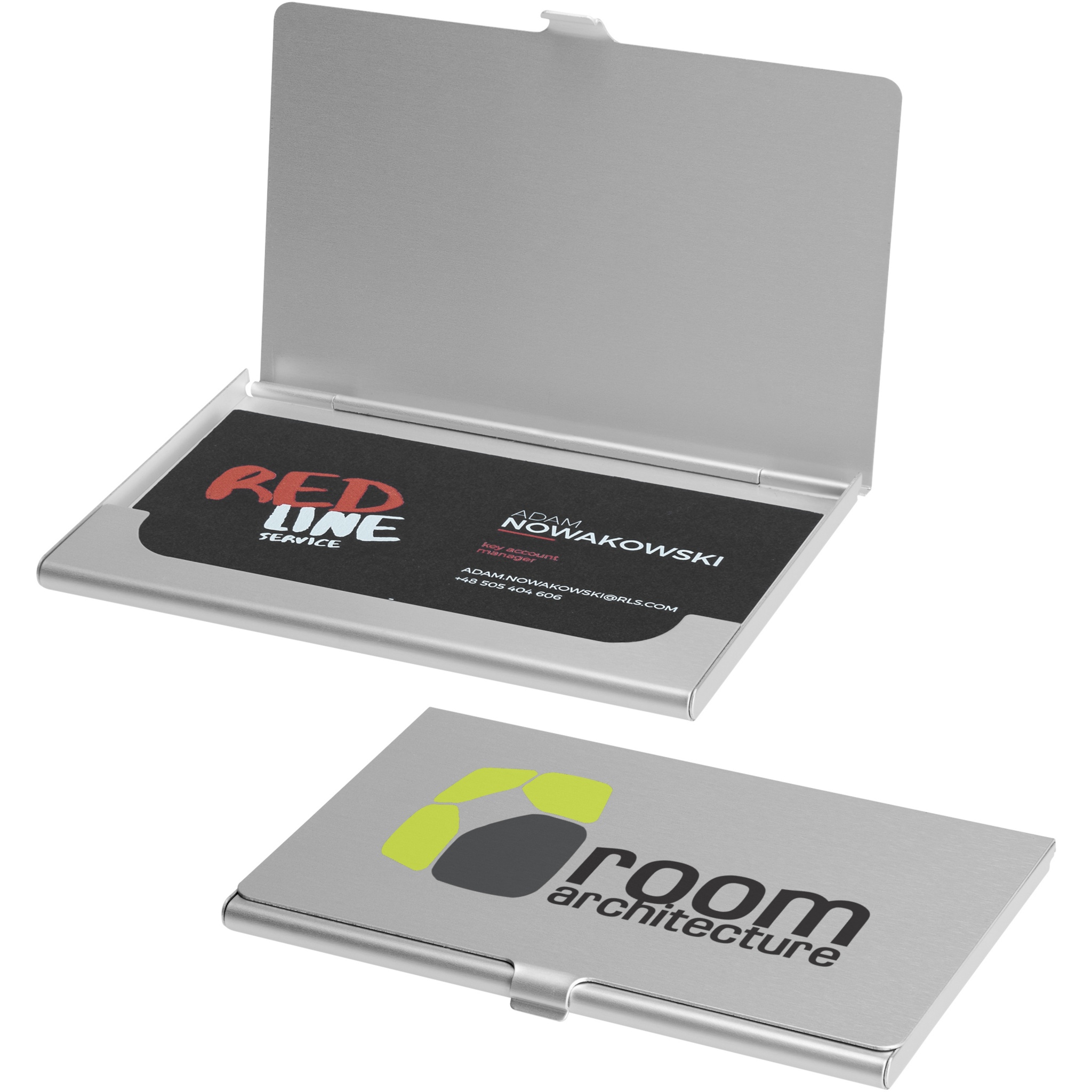 Visitkortshållare i aluminium. Plats för cirka 10 visitkort.