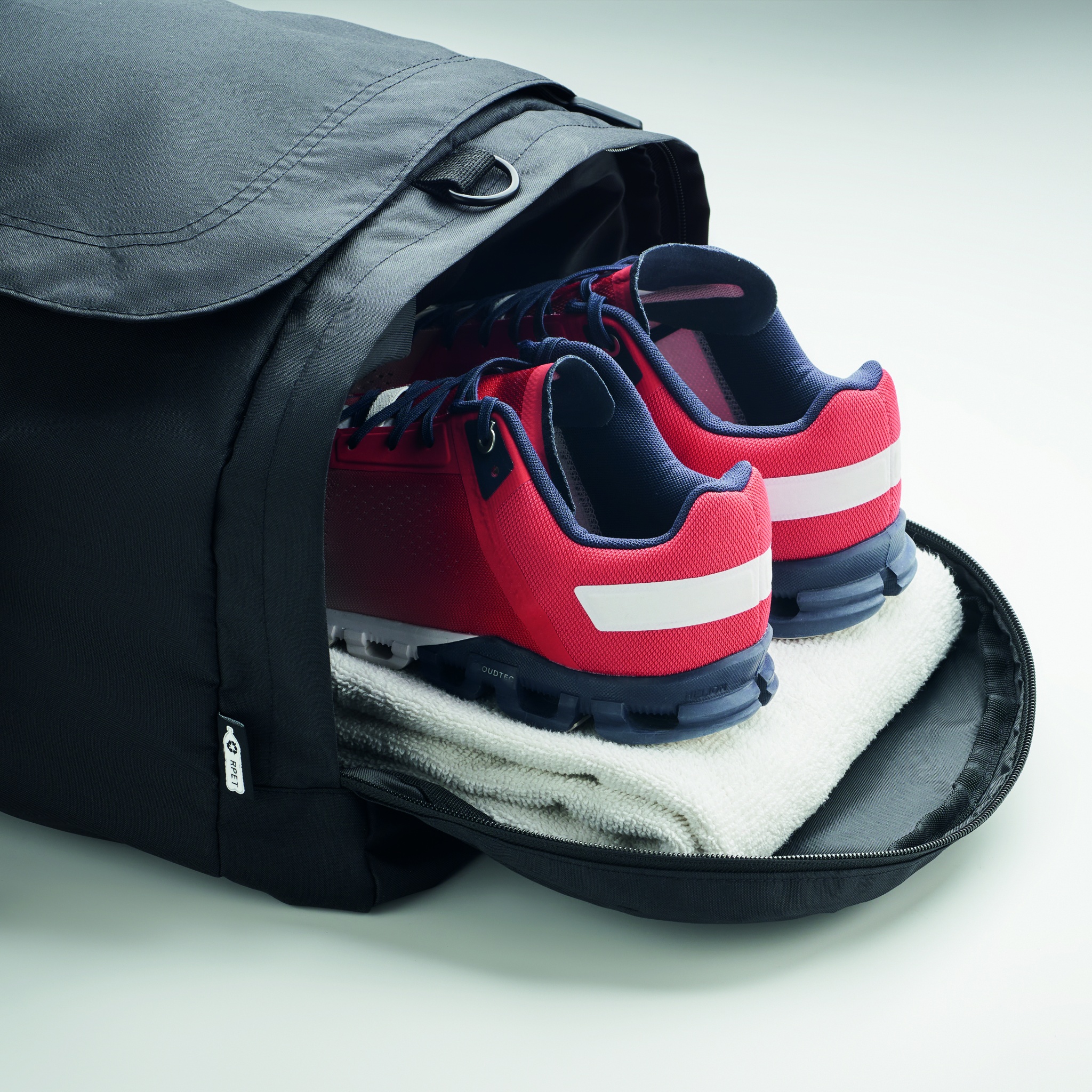 Stor sport- eller resväska i 300D RPET polyester. Huvudfack med med dragkedja och andra förvarigsfack. Urtagbar förstärkningsbottendel och justerbar och avtagbar axelrem.