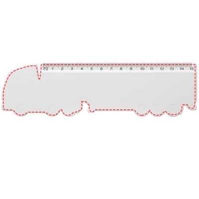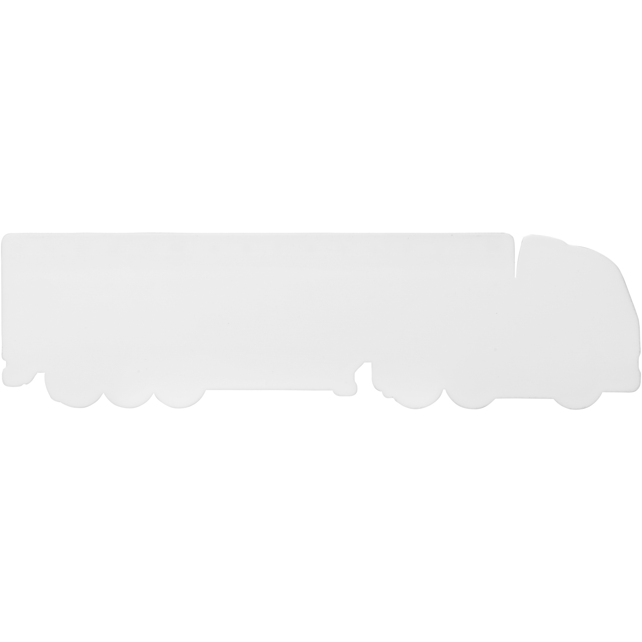 Lastbilsformad solid linjal av återvunnen plast med markeringar tillgänglig i tum eller centimeter.