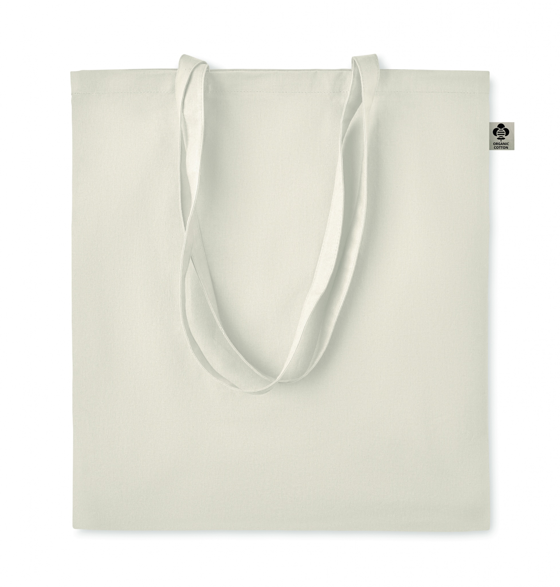 Kasse i ekologisk bomull med långa handtag. 140 gr/m².
