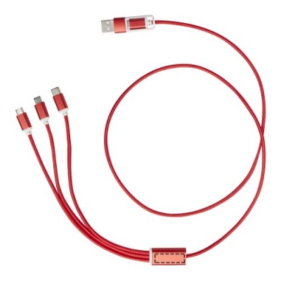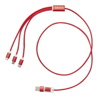 Denna kabel har en USB-A- och en Typ-C-ingångskontakt kombinerad med en Typ-C-, en mikro- USB och en Lightning/mikro USB-kombi-utgångskontakt. Tack vare alla dessa anslutningar kan du ladda de flesta iOS/Android-smarttelefoner, kameror, powerbankar och öronsnäckor. Kabellängden är 100 cm och är tillverkad av återvunnen aluminium och RPET.